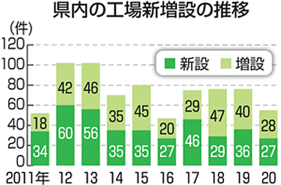 【数字で見る】福島県、工場新増設735件 新規雇用1万7000人