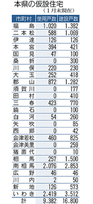 「仮設住宅」戸数が半減9382戸 19年1月末現在、再利用が進む