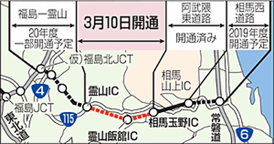 東北中央道「相馬玉野-霊山」3月10日開通 復興道路61%整備
