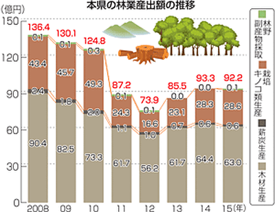 「林業産出額」原発事故前の7割 キノコ原木産地『復活』へ努力