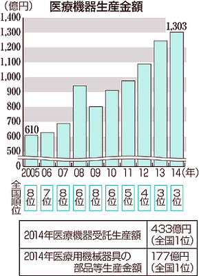医療機器...進む拠点化 生産額1.4倍・全国3位、産業復興の柱に