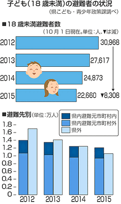 県外は徐々に減少、県内が逆転 18歳未満・子どもの避難状況