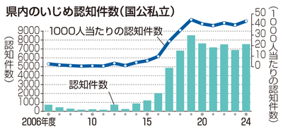 福島県内、いじめ認知7543件 24年度548件増、小学校で507件増