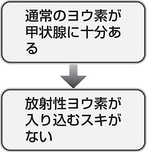 日本人は昆布をはじめとする海産物を多く食べるため、「ヨウ素」を取り過ぎてしまう傾向にあります。取り過ぎた「ヨウ素」は主に尿から排せつされます。 実際に県内の小児に対し、尿中「ヨウ素」濃度を計測すると、半数以上の方が高い値を示しました。 尿に「ヨウ素」が多く含まれていることは、私たちが栄養として「ヨウ素」を取り過ぎているということを意味します。しかしながら同時にこのことは、「震災当時から甲状腺内に...