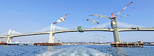 いわき市小名浜港は震災の津波による被害からの復旧工事がほぼ完了した。現在は、石炭の輸入拠点となる東港地区の整備や港湾背後地でのショッピングモールの出店など、港町の復興に向けた動きが本格化している。 3号埠頭(ふとう)で進められている埠頭と東港地区の人工島を結ぶ橋は今年1月に海上部分でつながり、完成が見えてきた。全長927メートルのうち、海上に架かる510メートルが整備され、工事は埠頭との接続部...