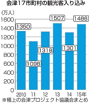 会津地域は新たな誘客策で本県の観光を先導している。 会津若松市を中心に会津17市町村でつくる極上の会津プロジェクト協議会が大まかに入り込み数を把握するためにまとめた観光客の集計値では、2011(平成23)年に1098万人と落ち込んだ観光客が、13年は大河ドラマ「八重の桜」の効果もあり1507万人に達するなど、回復してきている。新たに会津美里町など各市町村に漫画家の故手塚治虫のキャラクターを設定...