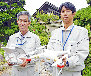 小型無人機「ドローン」を駆使して復興に貢献する目的で4月に設立された。本社は楢葉町。現在はいったん、いわき市に事務所を構え、ドローンを使った上空からの撮影を核に商機の拡大に奔走する。 社長の斉藤勇さん(64)は約40年前から、飛行機やヘリなどの無線操縦が趣味だった。勤務先の退職を機に「長年培った専門知識を生かし、地域社会の役に立ちたい」と起業した。 社員は2人。撮影や編集を手掛ける松本淳さん(...