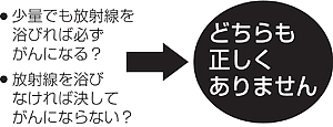 放射線を浴びることによるがんの発生は、放射線から身を守るため、「しきい値」がないと考えられています。受けた放射線量が増えるに従って、がんになる「確率(可能性)」が高くなるという意味です。確率(可能性)が増すという意味で、「確率的影響」と呼ばれます。 これは、鼻血や出血などの、大量に放射線を浴びれば症状が生じ、浴びなければ決してならない―という考え方とは全く異なります。 放射線を浴びるとがんにな...