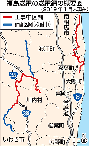 順調に普及が進んでいる再生可能エネだが、発電した電力の利活用が課題だ。 原発事故後の再生可能エネ普及で当初課題となっていたのは太陽光や風力発電の新設計画のある阿武隈山地や沿岸部は十分な送電網がないことだった。県などが出資する「福島発電」と東京電力、東邦銀行が出資する「福島送電」が昨年2月から送電網整備に着手。今年1月には経済産業省から送電事業の許可が出た。 送電網は太陽光17カ所、風力13カ所...