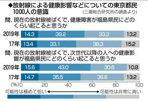 三菱総研は、都民の理解は2年前と比べ大きな改善は見られないとした上で、「(一定割合の)都民が放射線の次世代への健康影響を懸念している。このような懸念が続くと、国内の一部に差別や偏見の意識が根付いてしまう恐れがある」と問題提起している。