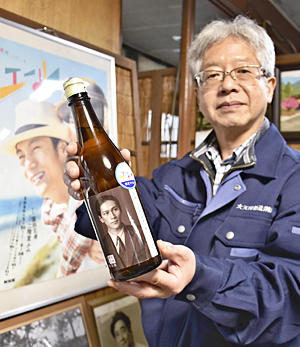 福島市出身の作曲家古関裕而をモデルにしたNHK連続テレビ小説(朝ドラ)「エール」の放送に合わせ、本宮市の大天狗酒造は18日、古関の親友で、同市出身の歌手伊藤久男をあしらった限定ラベル純米吟醸酒の販売を始めた。 同酒造の伊藤滋敏社長は、久男の親戚。ドラマでは、久男をモデルにした佐藤久志役を俳優の山崎育三郎さんが演じており、ドラマに合わせて若かりし頃の久男の写真をラベルにした。瓶には、エールのタイ...