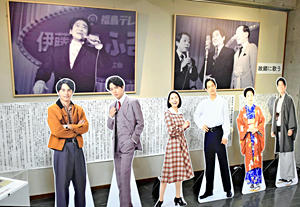 作曲家古関裕而をモデルにしたNHKの朝ドラ「エール」のご当地巡回展が19日、本宮市の白沢ふれあい文化ホールで始まった。24日まで。入場無料。 朝ドラ出演者の等身大パネルやサイン、ドラマ内で実際に使用した衣装や小道具などを展示。会場では、朝ドラで山崎育三郎さんが演じる「佐藤久志」のモデルで、古関の親友の歌手伊藤久男(本宮市出身)の展示会を開催中で、伊藤の写真やレコード、楽譜などと一緒に楽しむこと...