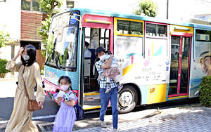 福島市のJR福島駅と古関裕而記念館などをつなぐまちなか周遊バス「ふくしまエール」号の運行が20日始まり、同記念館には周遊バスを利用して多くの人が訪れた。都道府県をまたぐ往来の自粛が解除されて初めての週末となったこともあり、県外から訪れた人も多かった。 記念館にはこの日、今年最も多い342人が来館し、このうち163人は県外からの来場者だった。宇都宮市から訪れた会社員、女性(54)は朝ドラ「エール...