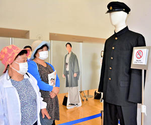 福島市出身の作曲家古関裕而をモデルにしたNHK連続テレビ小説(朝ドラ)「エール」のご当地巡回展は24日、会津若松市の会津稽古堂市民ギャラリーで始まった。来場者が出演者にまつわる品々に見入っている。29日まで。入場無料。 ドラマで実際に使用された衣装やハーモニカなどの小道具、出演者のサイン、等身大パネルを披露。古関が音楽を担当した連続放送劇「鐘の鳴る丘」の台本なども展示している。時間は午前9時~...