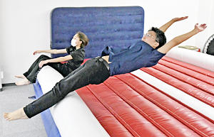 バック転へのトライ。くるりと回ることができたが、講師陣に支えてもらってのたまものだった。(報道部・石井裕貴) バック転を成功するために克服しなくてはいけないのは、斜め後ろにジャンプするという恐怖心だ。成功の秘訣(ひけつ)はここにある。 「これから本格的なバック転の練習ですけど大丈夫ですか」。代表の高橋知恵さん(37)から心配そうに尋ねられる。 「大丈夫です」。自信満々に答えた。なぜなら、門を...