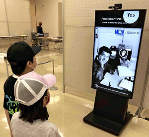 とうほう・みんなの文化センター(福島市)で開催中の「古関裕而が生きた時代―福島民友新聞で振り返る歴史のアルバム」の会場に、古関裕而と一緒に写真に納まることができるモニター付きカメラが設置され、来場者の注目を集めている。 カメラは、福島市のニューメディア福島センター(NCV)の協力で設置。 自分を撮影すると、モニター内の古関の画像と合成され、まるで一緒に記念撮影したような1枚の画像に仕上がる。出...