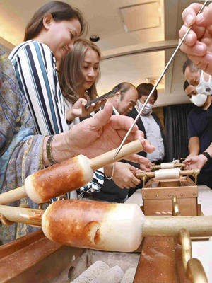 NHK朝ドラ「エール」に登場する愛知県豊橋市の名物ちくわを味わうイベントが30日、福島市の中国四川料理「石林」で開かれ、参加者が朝ドラ放映を契機とした福島と豊橋の交流促進に向けて親睦を深めた。 エールは福島市出身の作曲家古関裕而と豊橋市出身の妻金子(きんこ)がモデル。ドラマの中で出演者が豊橋ちくわを食べるシーンが描かれ、ひそかに話題となった。 イベントはちくわを製造販売するヤマサちくわ(豊橋市...