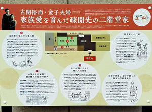 飯坂温泉観光協会は、古関裕而一家が1945(昭和20)年に疎開していた福島市飯坂町の二階堂家(旧二階堂魚店)の前に、当時の古関夫婦らの生活の様子が分かる看板を設置した。 NHK朝ドラ「エール」放送に合わせて8月上旬に設置した。看板には建物の間取り図などを掲載。当時6歳で古関一家と親交があった二階堂剛さん(81)への取材を基に「家族愛を育んだ八畳二間」「米軍兵士も縁側で聞き惚(ほ)れた金子の歌声...