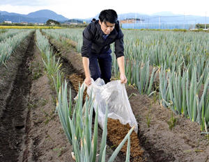 福島市大笹生のコメ農家で記者が挑戦する地ビール造り。製造工程の途中で社長の加藤晃司さん(40)から不意にバケツを渡された。 加藤さんに言われるがまま、寸胴(ずんどう)から甘い麦汁のもととなった麦芽をかき集め、袋に詰めて軽トラックに載せた。向かった先は加藤さんのネギ畑だった。 加藤さんは袋を畑の真ん中まで運ぶと、畝にその麦芽をまき始めた。煮出した麦芽を養分とした土壌で栽培する農作物はよく育つとい...