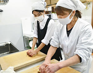 目の前に突然現れた大量の白あんは、次に作る和菓子「コギク」の材料だった。福島市の和菓子店「江戸番重菓子 駒屋」で取り組む和菓子職人へのトライ。次は店主須田輝美さん(59)が修業時代、触るまでに5年かかったというあんを使った和菓子作りに挑む。(報道部・千葉あすか) 和菓子作りがこれほどの力仕事だとは思わなかった。四季を感じる植物などの形をした「番重(ばんじゅう)菓子」の完成に向け、白あんを練り上...