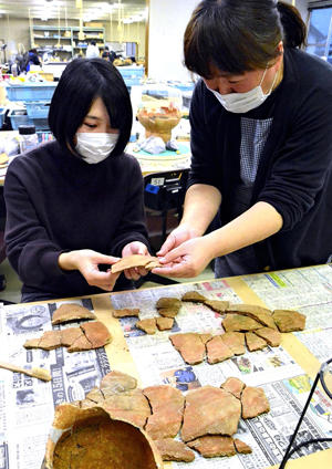 締めくくりは「整理作業」だ。発掘調査の成果を資料として後世に残す重要な工程だが、どんな作業が行われているのか全く想像もつかない。早速、福島市北矢野目にある市振興公社の文化財調査室を訪ねてみた。 「発掘現場で遺構や遺物を細かく記録したことが、ここで生きます」。出迎えてくれた文化財調査専門員の上田優喜さん(30)が説明してくれた。 上田さんには同市平石の「町畑・吉治下遺跡」の発掘調査で指導を受け、...