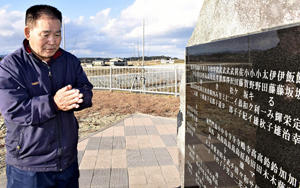 「いつ、どういう人が犠牲になったのか。孫の代に伝えるためにも碑は必要なんだ」。大津波で119人が犠牲となった新地町。遺族代表として町に慰霊碑建立を要望した漁師小野重美さん(73)は、碑に刻まれた亡き父利雄さん、母キクイさんの名を見ながらつぶやく。 小野さんは東日本大震災直後、津波に備えて漁船を沖合に避難させる「船出し」に向かった。想定外の津波が迫るのを眼前にし、さらに船を沖に進め危機を乗り越え...