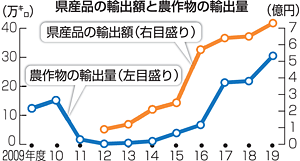 県産品の輸出量は東京電力福島第1原発事故で激減した。世界54カ国・地域が導入した輸入規制の影響が大きく、農産物は2010(平成22)年度の15万2900キロから、12年度には2400キロまで落ち込んだ。 21年1月29日現在で輸入規制を継続しているのは、事故前の主要輸出先だった香港、台湾を含む15カ国・地域。県は、輸入規制の撤廃が早かった東南アジアの市場開拓にかじを切り、県産品の安全性と品質の...