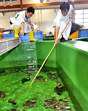 幻の高級魚とも呼ばれるホシガレイの漁獲量を陰で支える人たちが相馬市にいる。稚魚を育て、放流している県水産資源研究所の職員だ。ヒラメの2倍以上の単価で取引されるホシガレイは、漁業者からのニーズも高い。飼育するには、どんな苦労があるのか。その業務にトライした。(相馬支局・丹治隆宏) 記者が向かったのは、研究所内の魚類棟。水槽をのぞいてみると、小さな稚魚の姿はどこにもなく、体長約40センチほどの成魚...