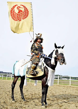 「さあ、着てみるか!」。中ノ郷騎馬会の会長中島三喜さん(73)は、軽トラックの荷台に何やら物騒な武具を積んで、南相馬市の松浦ライディングセンターにやって来た。甲冑(かっちゅう)だ! 江戸時代から伝わる本物の甲冑を手配し、記者に貸し出してくれた。数百万円はくだらない代物だ。「甲冑姿で馬に乗ってみろ」。そう笑顔で話す中島さんと松浦秀昭さん(78)が着付けを手伝ってくれた。 小さな椅子に座り、はかま...