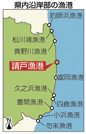 東日本大震災で甚大な被害を受けた浪江町の請戸漁港の復旧工事が昨年に完了した。これにより、震災で被災した本県沿岸の漁港10カ所全てが復旧し、「常磐もの」として名高い本県水産業の復興に向けて弾みがつく1年となった。 県によると、請戸漁港の震災前の水揚げ量は約2357トン(2010年)。相双地区では相馬市の松川浦漁港に次ぐ水揚げ量があり、沿岸漁業では県内有数の規模を誇っていた。しかし、津波で防波堤や...
