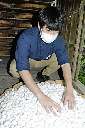 福島市飯野町で養蚕を営む黒沢仁さん(66)方で、回転蔟(まぶし)から繭を取り出して収穫する「収繭(しゅうけん)」作業の日を迎えた。養蚕体験も大詰めだ。「蚕様がしっかりとした繭を作った。さぁ取り出していくぞ」と声を弾ませる黒沢さん。蚕は蔟の枠に行儀良く収まり、真っ白な繭を作っていた。(報道部・津村謡) 光にかざし選別 作業は、蔟の枠から繭を外す「自動毛羽(けば)取り装置」と呼ばれる機械を使い、一...
