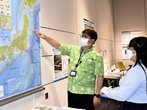 会場では学芸員の瀬戸真之さんから展示品について解説を受けられる。授業の一環で訪れた小高産業技術高2年の渡部心埜(みの)さん(16)は「プレートの仕組みを理解でき、福島で地震が多い理由が分かった」と話した。