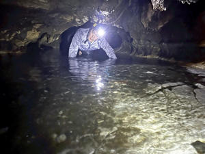 「ここからは人の手がほとんど入っていないので、頭や足を岩にぶつけないように気をつけてください」。案内役を務めてくれる田村市滝根観光振興公社係長の西山政義さん(43)がアドバイスをしてくれた。「危ないといってもきっと大丈夫だろう」。Aコースを経験し、気持ちが大きくなっていた。(棚倉支局長・横田惇弥記者) スタート早々、深水洞という水が膝上まである場所があった。驚いたのは水の冷たさだ。水温は約10...