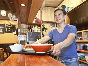 夜は居酒屋営業 時計の針が正午を指す頃、カウンター6席とお座敷19席はおなかをすかせたサラリーマンや作業員らであふれる。郡山市のさくら通りに面する「福味食堂」の料理はボリューム満点で誰もが満腹になる。昼は食堂、夜は居酒屋として営業している。 創業は55年ほど前。店主の遠藤多加夫さん(52)は「当初はごく普通の食堂だった」と振り返る。多加夫さんの母王君子(ふみこ)さんが調理し、父守さんが出前の配...