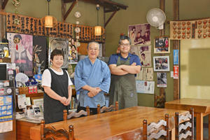 呉服店から転換 昭和の大衆食堂の風情を残す二本松市の相模屋食堂は、子どもの守護神として知られる同市小浜の万人子守地蔵尊の近くに店を構える。週末になると、ボリューム満点の名物のカツ丼を求め、市内外からの常連客であふれる。 創業は1967年。地元の旧岩代町で店を開きたいと、初代の故佐久間孝さんが戦後、神奈川県相模原市での土木作業で資金を稼ぎ帰郷後、58年に呉服店として開業。店名には「土木作業員時代...