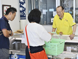 千葉県から観光で訪れた女性(51)は「(処理水の海洋放出は)全く気にしていない。おいしいから食べる、ただそれだけのこと」と落ち着いた様子で話し、柴会長から食べ方を聞きながら、シラスやサワラの刺し身などを買い物かごいっぱいに購入した。