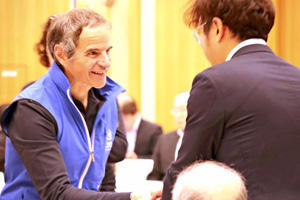 「処理水の最後の一滴を放出するまで、IAEAはこの地にとどまる」。7月上旬、いわき市で開かれた東京電力福島第1原発周辺の市町村長や関係者が集まる会議に遅れて現れた国際原子力機関(IAEA)の事務局長グロッシ(62)は参加者一人一人と握手を交わし、そう約束した。
