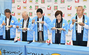 西村は「県産水産物のおいしさをできるだけ多くの人に、国内外にお伝えしていきたい」と述べ、代表であいさつしたヨークベニマル会長の大高善興(83)は「処理水の風評被害を心配し、地元のトップが参加した。オール福島でお客さまに正しい情報を伝え、キャンペーンを通じ、販売拡大にみんなで力を合わせていきたい」と協力を誓った。
