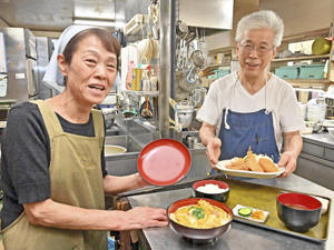 川俣シャモ柱に ぷりっぷりの食感のブランド地鶏「川俣シャモ」をふんだんに使った黄金色の親子丼に、うまみの強い川俣シャモの鶏ガラスープで仕上げる「シャモラーメン」、肉汁あふれる手作りギョーザ―。川俣町の中心部にたたずむ「お食事処だいまる」は、今日もお目当ての料理を求める客で活気づく。多くの客の胃袋をつかみ続けて50年。「地域に愛される料理を提供したい」。長い歴史を支えてきたのは店主の佐藤祐八さん(...