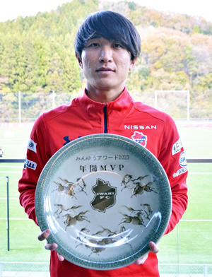 年間MVP・岩渕選手に「特製シャーレ」 いわきFC、来季へ決意