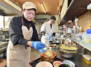 長年庶民の味方 親から子へ、引き継がれる食堂は少なくない。福島市の「もりや食堂」もその一つだ。ただ、ほかと少し違うのは秘伝の料理のレシピが残っていたわけでも、教えられていたわけでもないような状況で、先代から引き継いだことだ。 白鳥が飛来する阿武隈川のほとりの文知摺橋付近に食堂はある。先代の故斎藤衛夫(もりお)さんが今の橋がかかる1979年より前に創業したようだ。 「今の橋ができる前は店の前に...