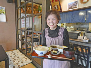 「日替わり」だけ 相馬市の田町通りは、城下町の風情を漂わせる落ち着いた雰囲気の商店街だ。通りにのれんを掲げる「初梅」では、気取らない、優しい味わいの日替わり定食が楽しめる。毎日食べても飽きのこない料理が、常連客を引きつけて離さない。 昼時の店内に入ると、どこを見回してもメニュー表らしきものが見当たらない。それもそのはずで、この店が出すのは日替わり定食だけ。ホイコーローとあじフライ、チキンカツと...