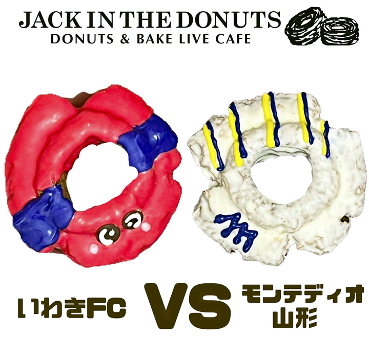 ■ジャック・イン・ザ・ドーナツ ホームゲームで対戦する両チームのイメージをドーナツで表現。味も満足してもらえるおいしさ。食べて推しチームを応援しよう。 ▼メニュー ・対戦ドーナツ550円・カレードーナツ350円・カップドーナツ600円・ファミリーセット1000円・コーヒー300円・レモン酎ハイ700円