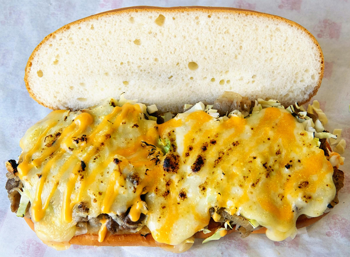 ■チーズステーキサンドウィッチ 県内外の音楽フェスなどでも人気のチーズステーキサンド。今年もいわきFCのホームゲームで食べられる。ぜひご賞味ください。 ▼メニュー・チーズステーキサンドウィッチ 1000円・焼きそば 600円・生ビール(420ミリリットル) 600円
