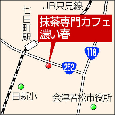 会津若松市の観光地・七日町通りにある抹茶専門カフェ「濃い春」。抹茶好きの記者は「本格的な抹茶が楽しめる」とのうわさを聞き、わくわくしながら店に向かった。 白を基調とした明るい雰囲気の店内に入ると、茶せんや茶わんなど茶道具が並ぶ。抹茶は、店主の小濃(おのう)夏美さん(30)が注文後に1杯ずつたててくれる。カウンター席に座って小濃さんが抹茶をたてる様子を見ていると、人気メニューのアイス抹茶ラテと...