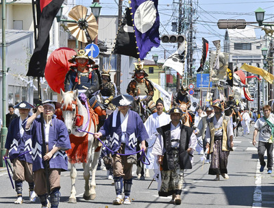 勇壮な戦国絵巻を繰り広げる国指定重要無形民俗文化財「相馬野馬追」が相双地方で開幕。猛暑による影響を避けるため、従来の7月から2カ月前倒しされてから、初めての開催。(5月26日)