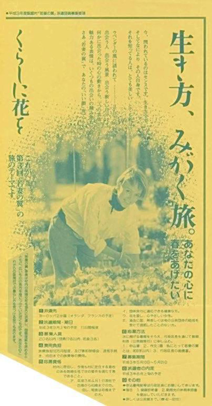 21世紀には村の女性を海外に派遣して研修させる「主婦の翼」が飛んでいるはず―。 いいたて夢創塾(むそうじゅく)の「新春ホラ吹き大会」で女性が披露したこのほらが、当時の村長の目に留まった。ほらだったものが海外派遣事業「若妻の翼」へと名前を変え、実現に向けて本格的に動き出した。 1989(平成元)年、私は酪農を営む傍ら村の嘱託公民館長に就任していた。そして事業の運営を公民館が担当することになった...