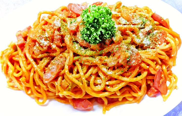 ■昔ながらのナポリタン 生麺のパスタを使用し、大人も子どもも、みんな大好きな昔懐かしい喫茶店の味わいに仕上げた。 ▼メニュー ・いわき味噌(みそ)焼き牛串 600円・昔ながらのナポリタン 750円・濃厚ホタテクリームスパゲッティ 800円・ボロネーゼスパゲッティ 800円・フライドポテト 500円・スモークターキーレッグ 800円