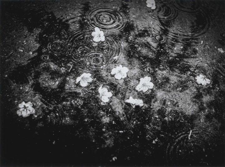 【評】モノクロにしたことで、色にとらわれず花や水紋の形状に目が行き、咲いては散るという普遍性も感じられます。