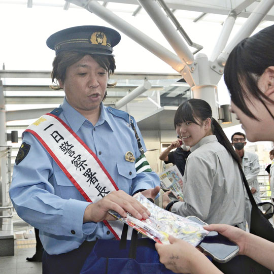 同駅ではトークライブも行われ、ホリさんがさまざまな芸能人や有名人の物まねを披露し、集まった市民を楽しませた。ホリさんは「ものまね芸人が言うのもなんだが『なりすまし(詐欺)』には気を付けて。お酒を飲んだら運転はしないで」とメッセージを送った。